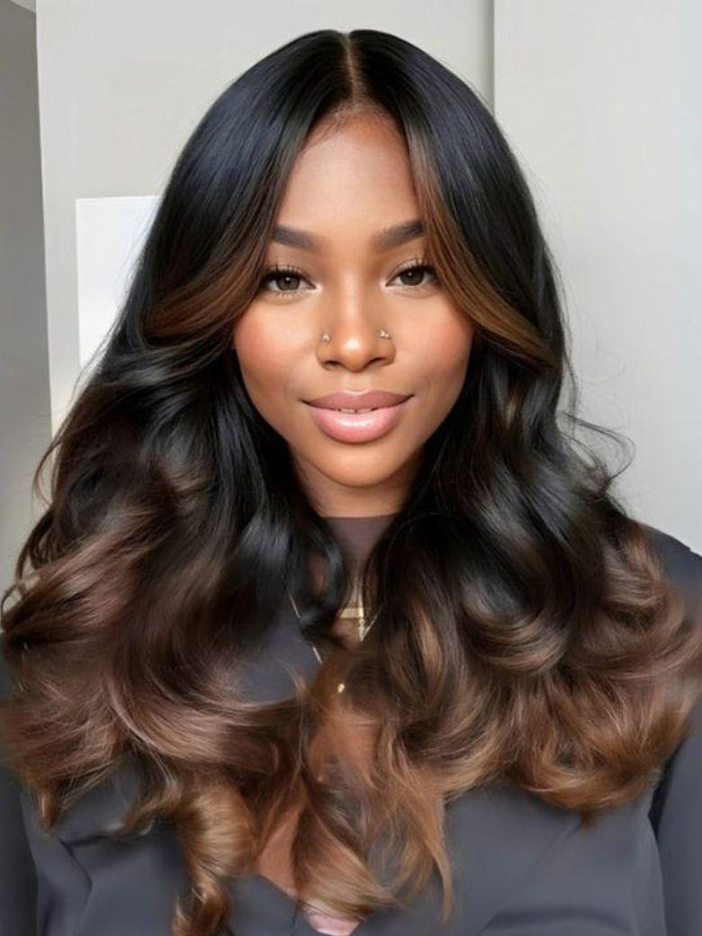 13x4 Pre-Everything Autumn Black to Cappuccino Ombre Loose Wave Wig With Invisible Drawstring