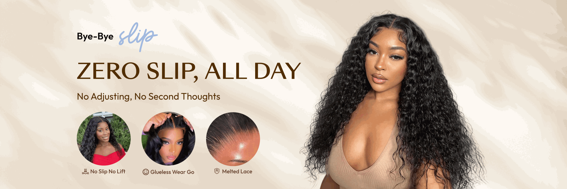 A Bye-Bye Slip™ Wig is a secure glueless wig designed to stay firmly in place without the need for glue or adhesive. What makes it different is the built-in silicone strip inside the wig cap, which helps grip your scalp and prevent slipping throughout the day. It's created for anyone who wants a quick, reliable, and beginner-friendly wig that can be worn confidently in both everyday and active situations.