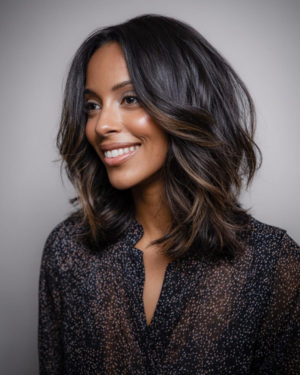 If your fine hair feels flat, the layered shoulder-length bob with highlights is your quick fix. Soft layers add bounce, while subtle highlights give depth, dimension, and a touch of glam—making hair look thicker, healthier, and totally Insta-worthy.