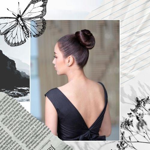 Elegant and understated, the low ballet bun sits at the nape of your neck. Ideal for formal events or professional settings, it complements long necklines and statement earrings.