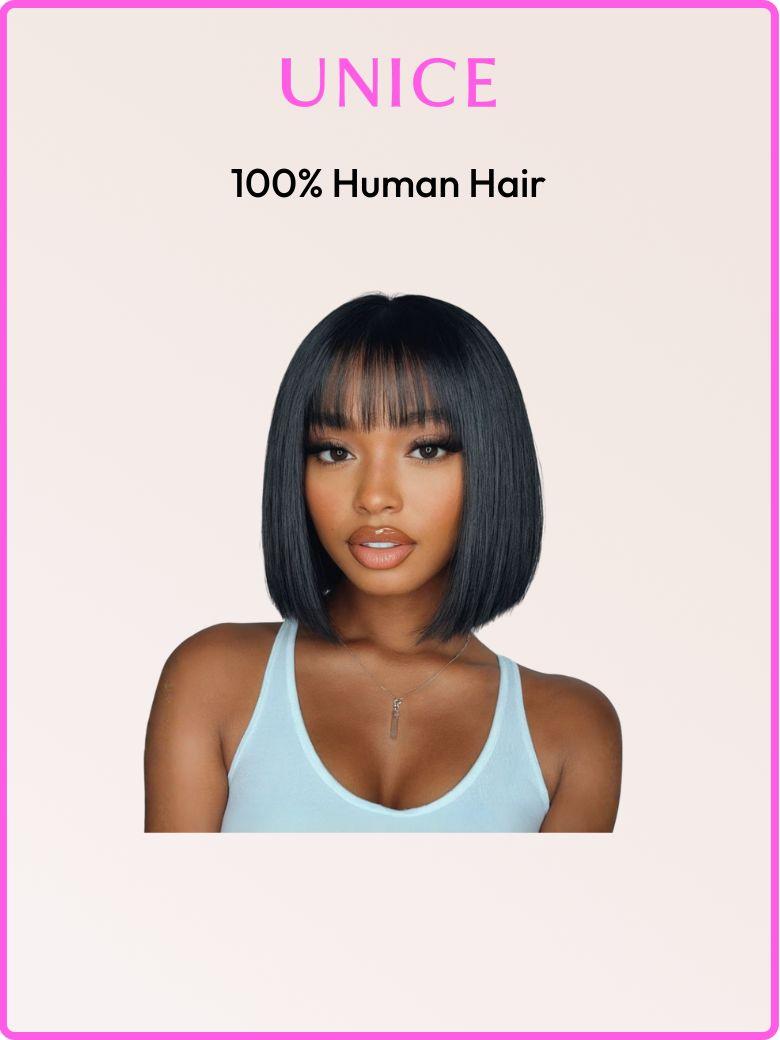[Free Wig] UNice Straight Bob Black Wig Human Hair Glueless Wig with Blunt Bangs