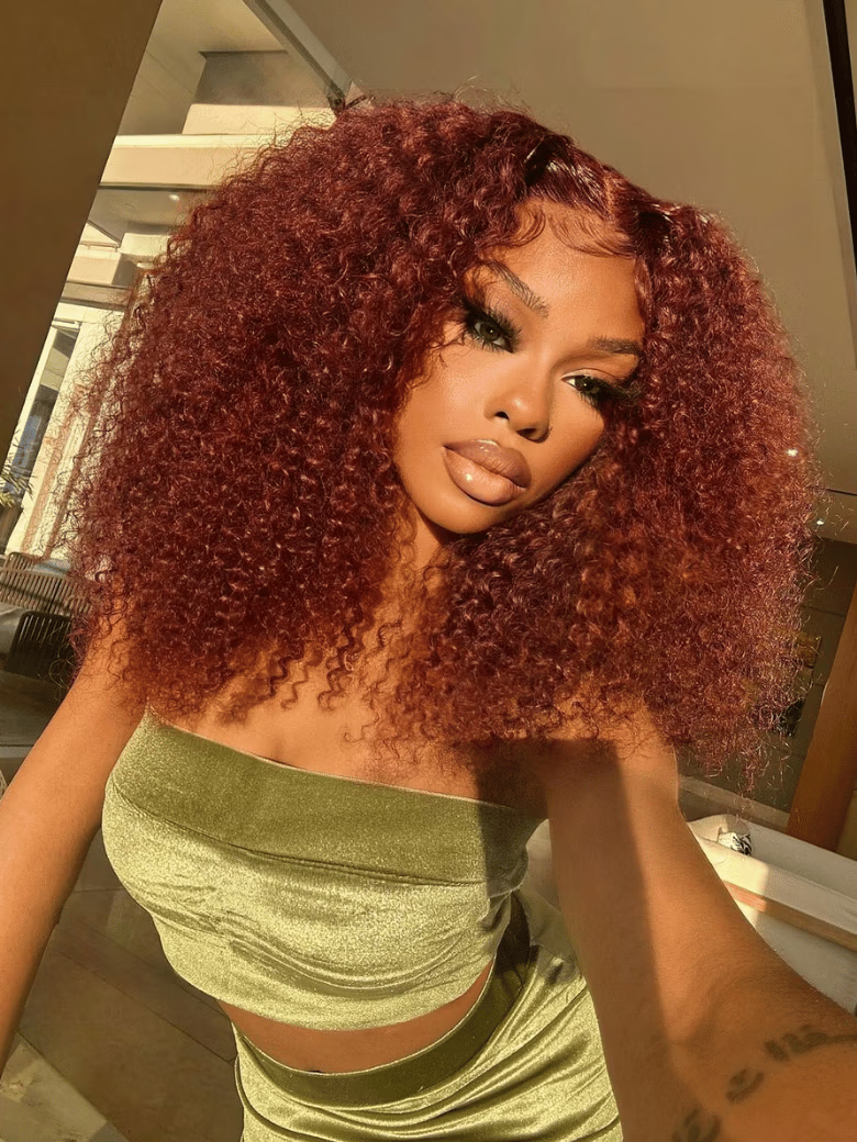 - Trendy and Versatile Reddish Brown Hair With Voluminous Kinky Curly Texture
