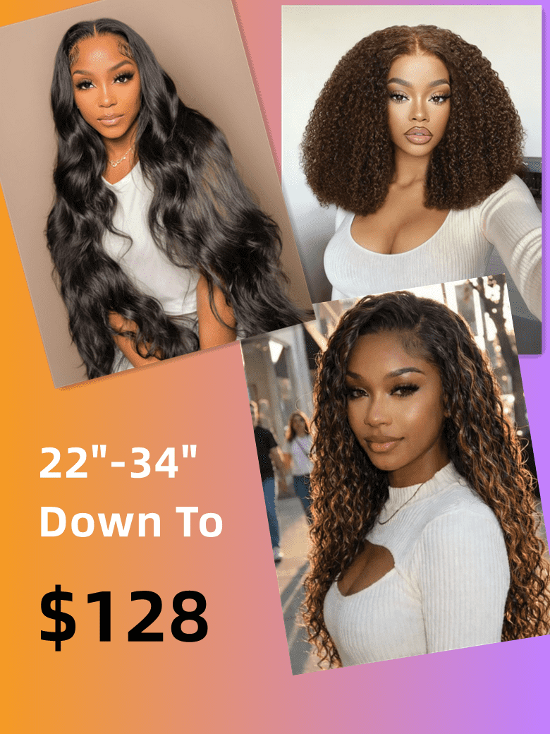 [Limited Stock] 13x4/5x5 HD/4x4 pre Cut 22"-34" Highlight Water Wave/ Chocolate Brown Curly/ Black Body Wave Wigs