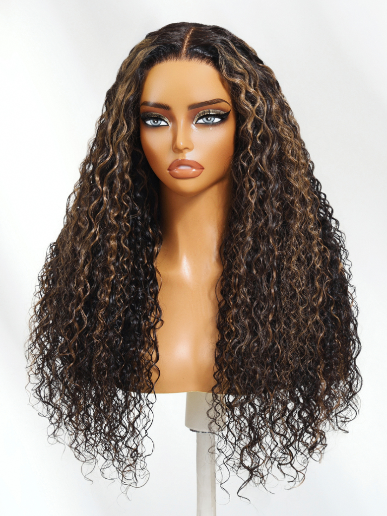 20"-24" Highlight Bouncy 13x4 Drawstring Water Wave Curly Pre-Everything Lace Frontal Wig