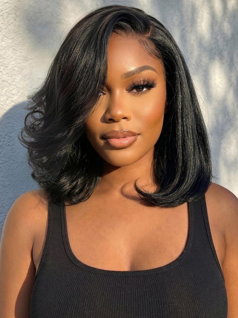 UNice 7x5 Bye-Bye Slip™ Lace Natural Black Side Part Blowout Bob Wig with Soft Curled Ends