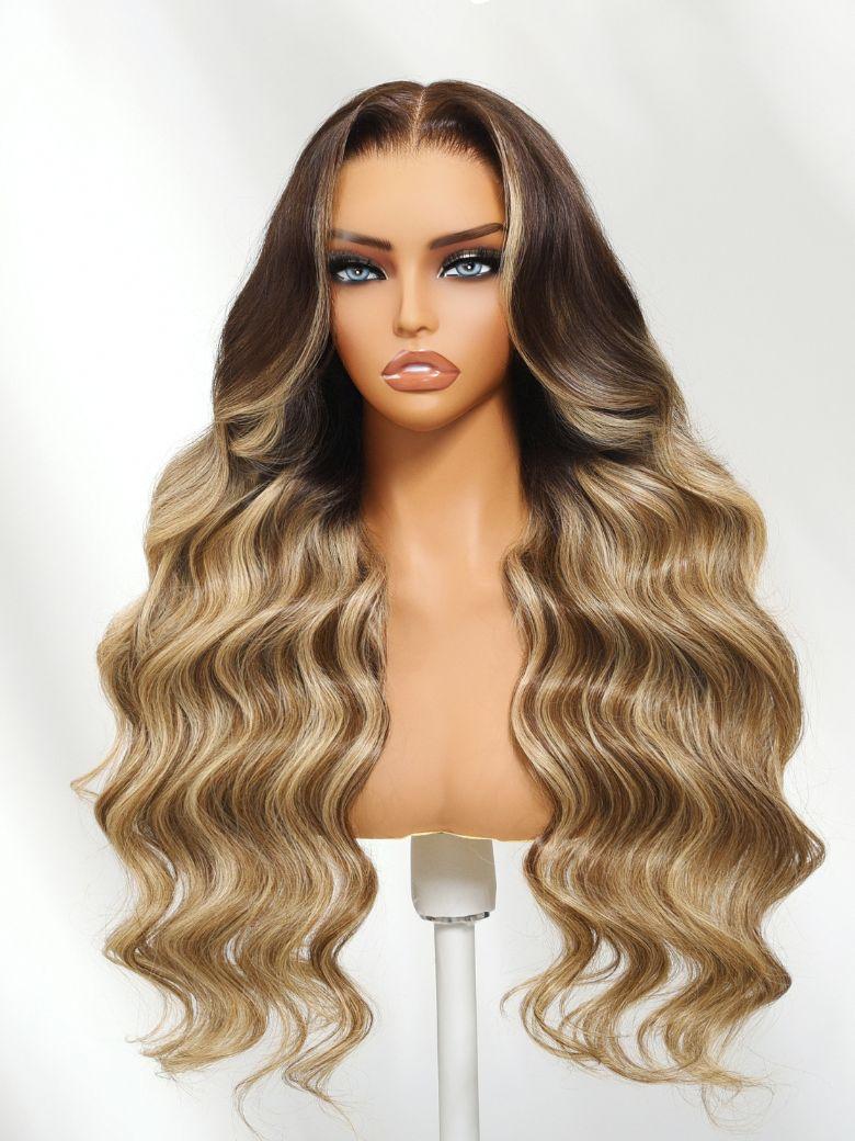 UNice 13x4 Pre-Everything™ Lace Frontal Honey Blonde Balayage With Chestnut Brown Roots Body Wave Drawstring Wig