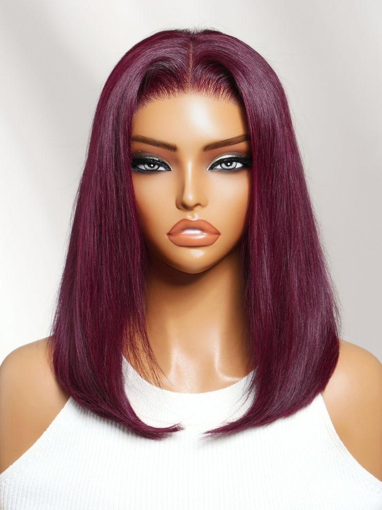 UNice 13x4 Bye Bye Slip™ Lace Frontal Black Cherry Sleek Straight Bob Glueless Wig with Invisi Drawstring