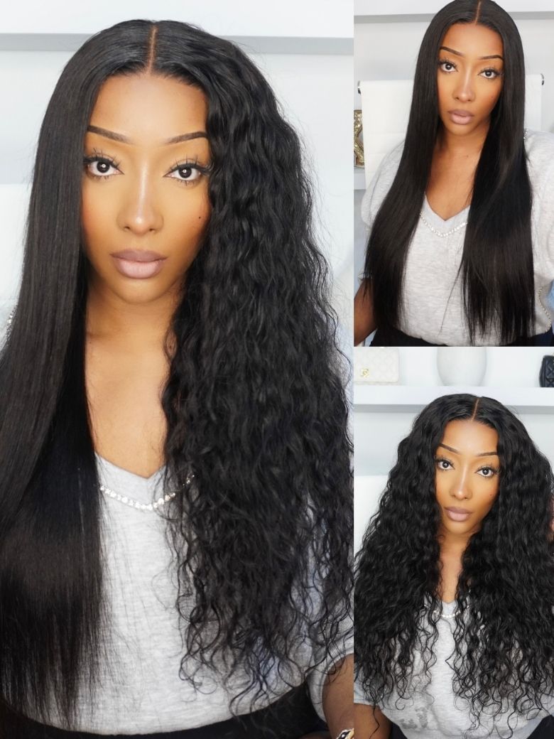 UNice 13x4 Bye Bye Slip™ 2-in-1 Straight to Water Wave Wet and Wavy Human Hair Wig With Invisi Drawstring