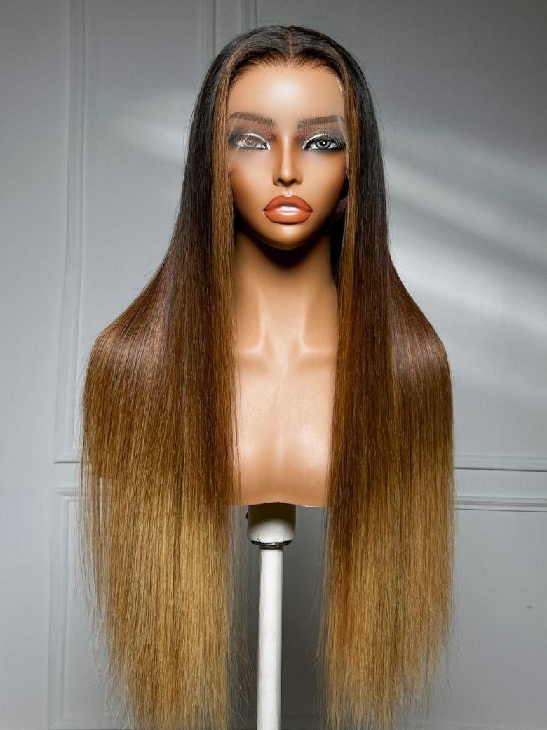 UNice 360 HD Lace Real Scalp™ Brown to Honey Blonde Ombre Silky Straight Wig with Dark Roots
