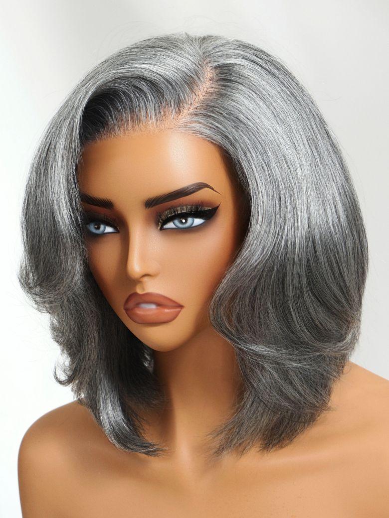 UNice 6.5x1.5 Lace Salt and Pepper Side Part Blowout Layered Bob Glueless Wig