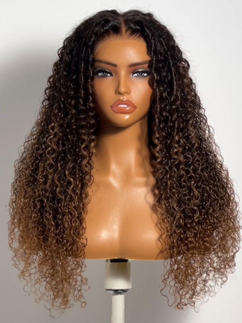 UNice 7x5 Bye Bye Slip™ Glueless Lace Dark Brown to Caramel Ombre with Dark Roots Jerry Curly Wig with Spiral Curls