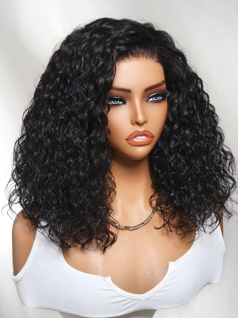 UNice 7x5 Bye Bye Slip™ Lace Black Celebrity-Inspired Side Part Natural Curly Bob Wig Drawstring Wig 180% Density