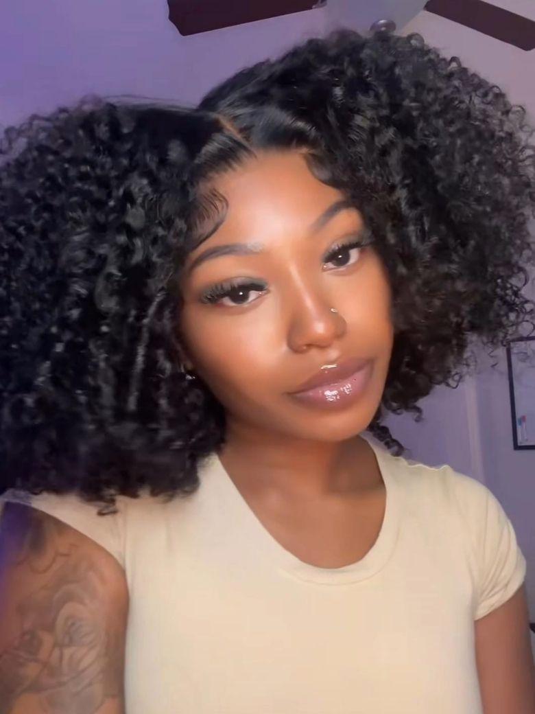 UNice 7x5 Lace Bye Bye Slip™ Natural Black Afro Kinky Curly with Finger Coil Ends Drawstring Wig 180% Density