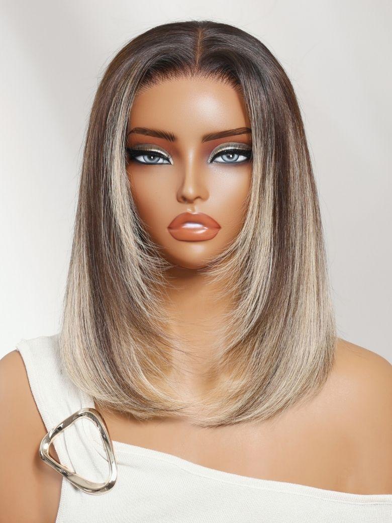 UNice 7x5 Bye Bye Slip™ Lace Ash Blonde Highlights with Dark Root Straight Layered Bob Glueless Wig