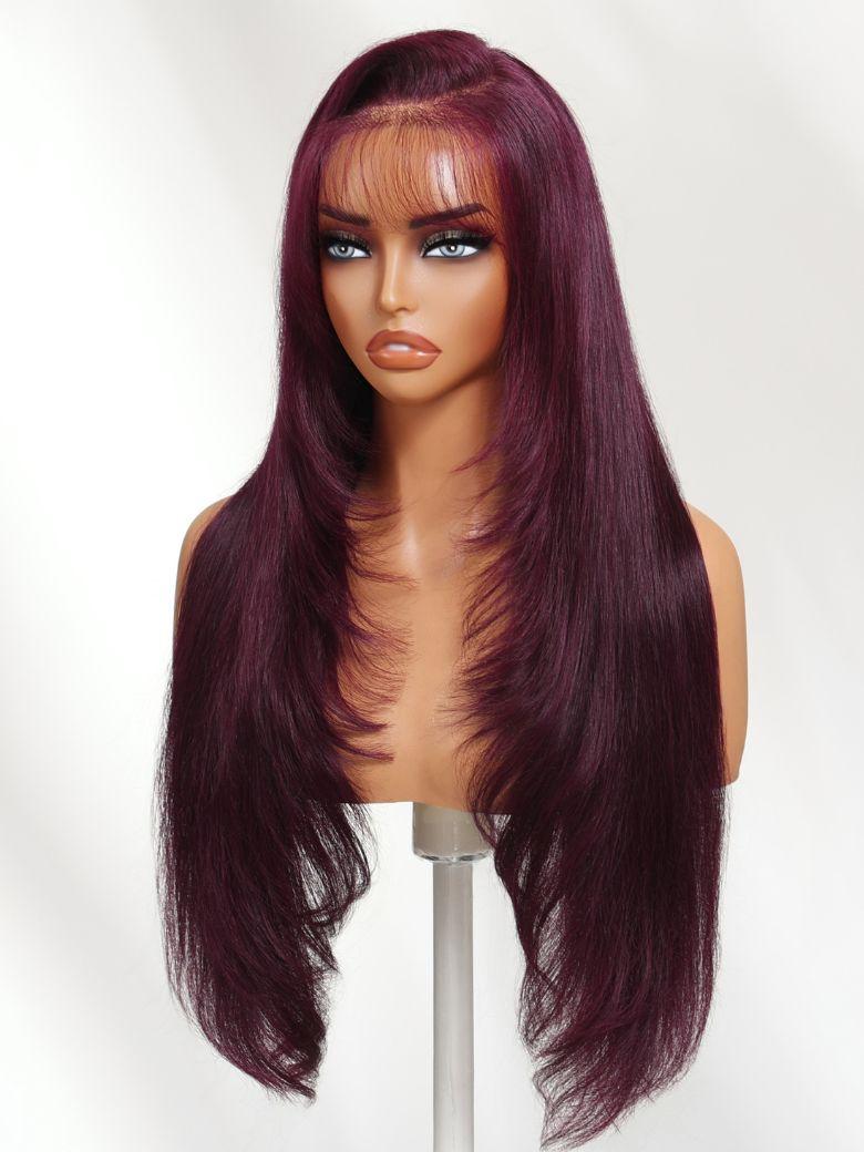 Black FridayUNice Black Cherry Bye-Bye Knots™ 7x5 Lace Face Framing Layer Cut Straight Wig with Wispy Bangs Drawstring Wig