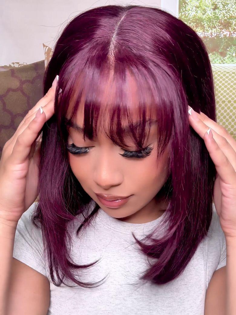 UNice Bye-Bye Knots™ 7x5 Lace Black Cherry Layered Wolf Cut with Wispy Bangs Drawstring Wig