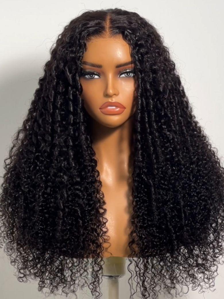 Black Friday EncoreUNice Bye-Bye Knots™ 7x5 Lace Black Defined Coils 3C-4A Blend Curly Wig with Invisi Drawstring
