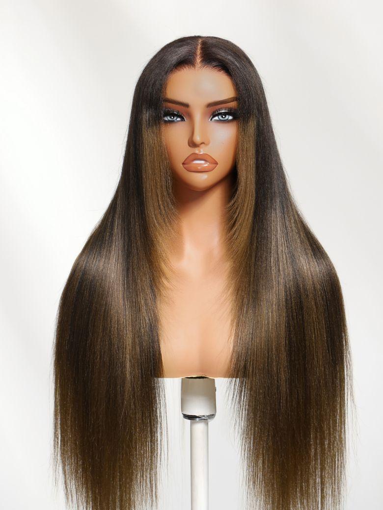 Black FridayUNice Bye-Bye Knots™ 7x5 Lace Black to Chestnut Brown Ombre Face Framing Layer Cut Yaki Wig with Drawstring Wig
