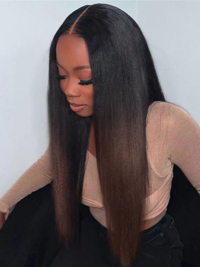 UNice Bye-Bye Knots 7x5 & 13x4 Lace Black to Chestnut Brown Ombre Yaki Straight Wig With Invisi Drawstring