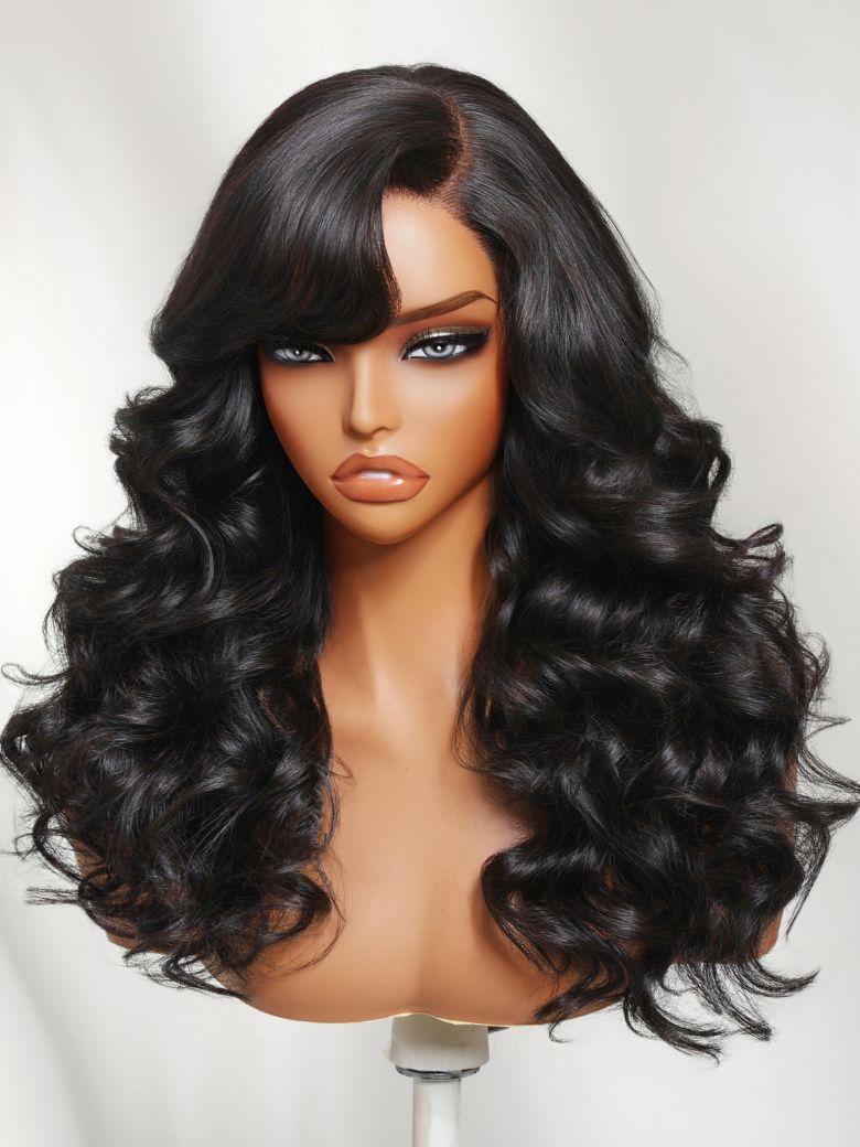 UNice Bye-Bye Knots™ 7x5 Lace Loose Curls Feathered Cut 200% Density Wigs with Side Swept Bangs & Invisi Drawstring