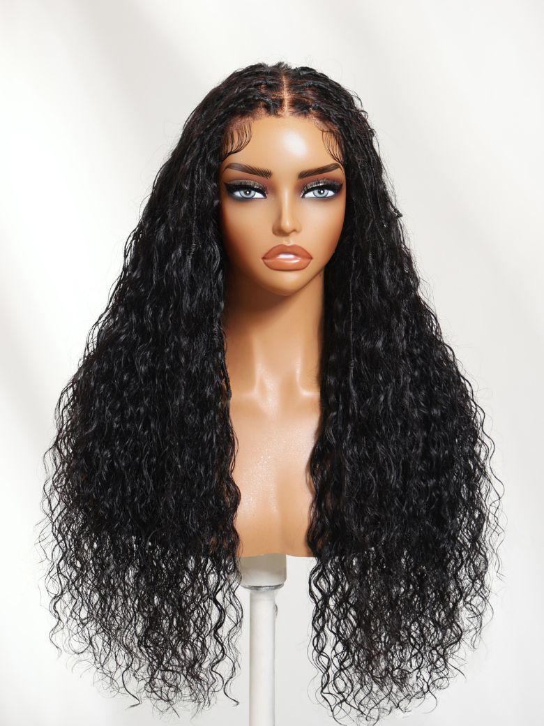 Black FridayUNice Bye-Bye Knots™ 7x5 Lace Black Water Wave Wig with Locs with Invisi Drawstring