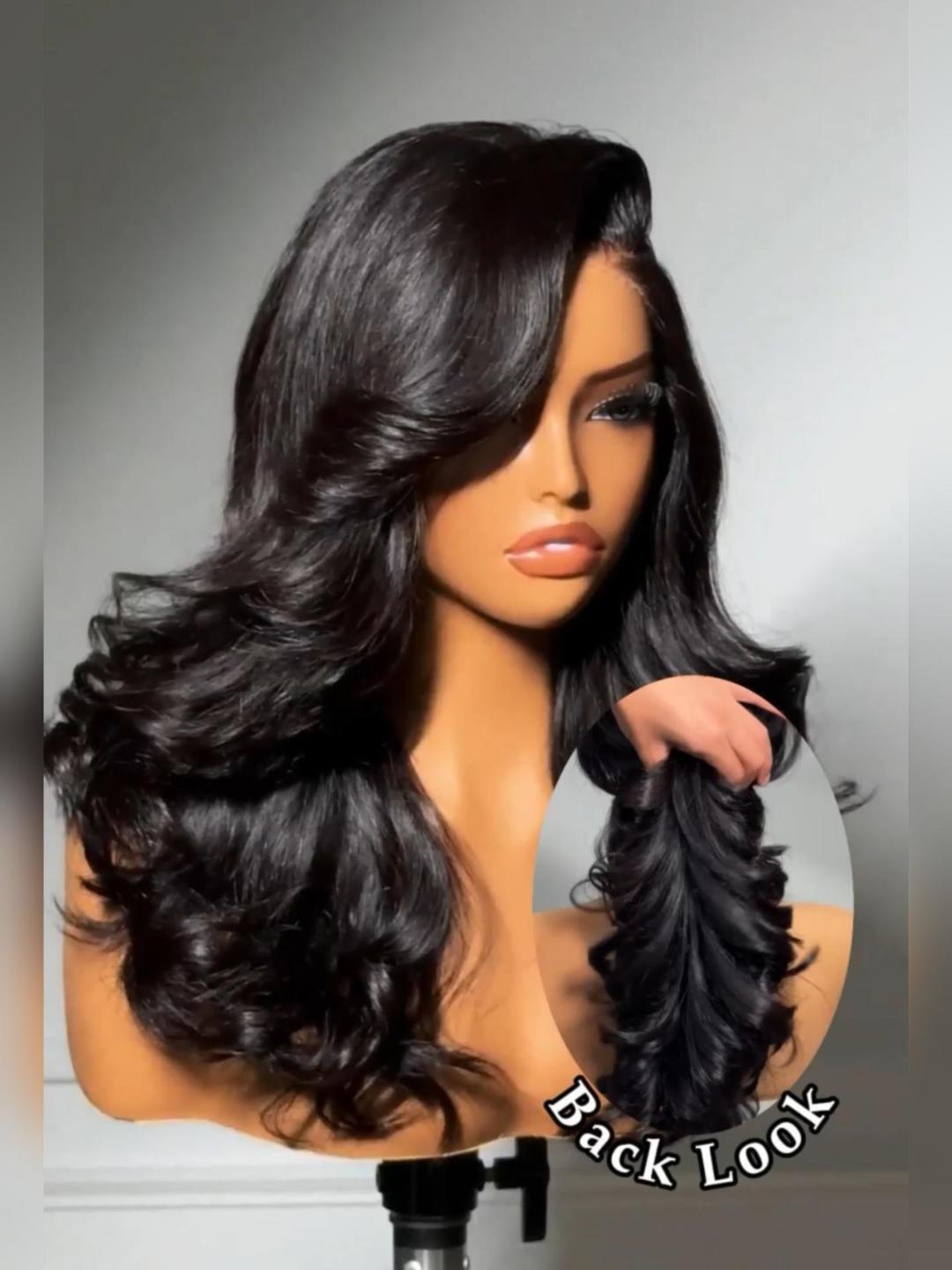 UNice Bye-Bye Slip™ Wig Feathered Layer Left Side Part 200% Density Wig with Secure Silicone Strips and Drawstring